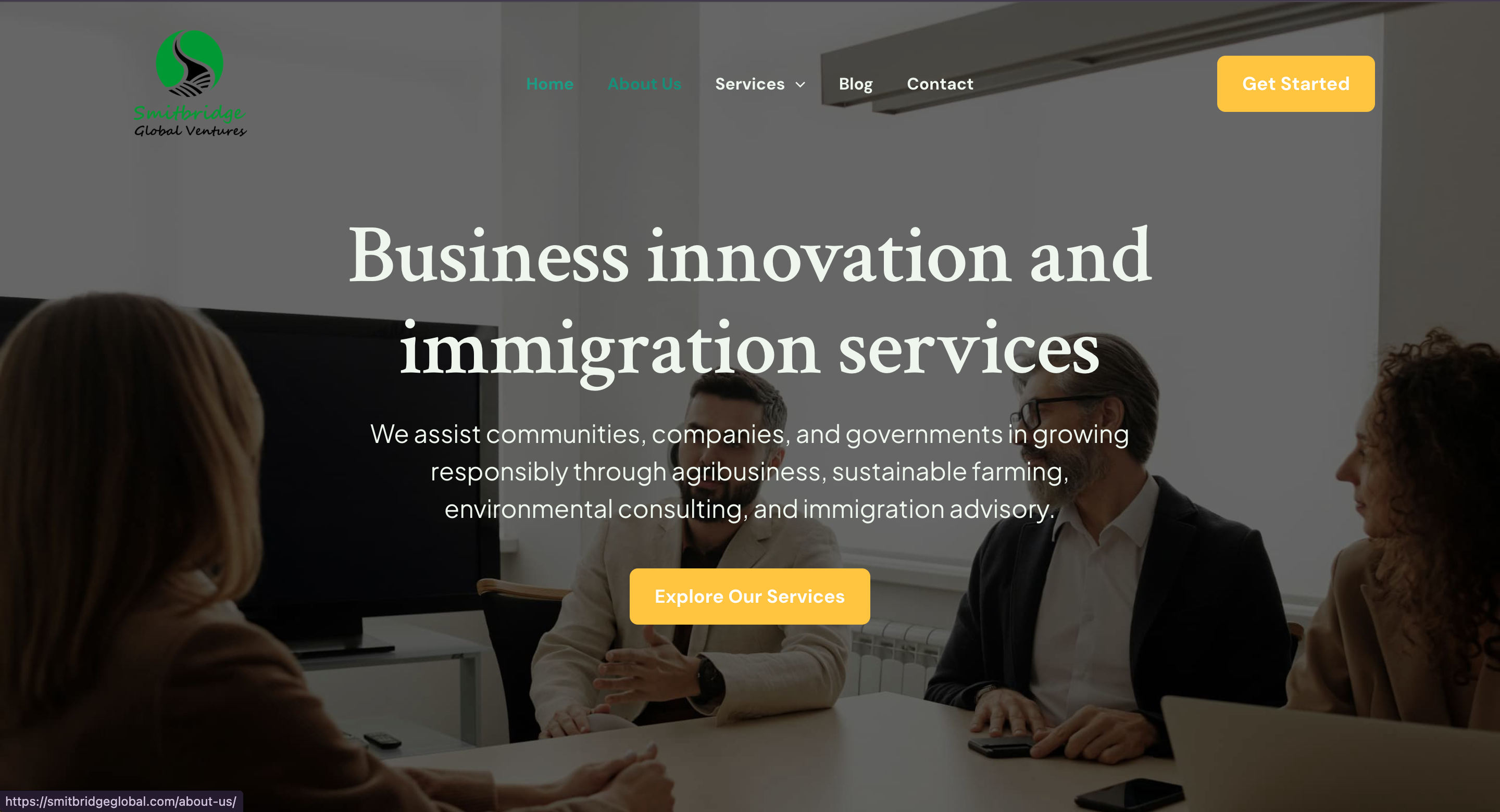 SmitBridge Global Ventures LLC needed a professional digital platform to effectively communicate their diverse range of consulting services including environmental consulting, agribusiness and sustainable farming, immigration services, and business advisory. They required a website that could establish credibility with communities, companies, and governments while showcasing their expertise in helping organizations grow responsibly.